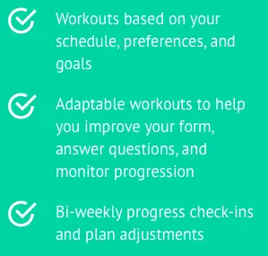 This program is different because you’re different! It's customized to YOU — your needs, your preferences, and even your schedule. We want to set you up for success, not failure, so everything we do together is highly tailored to what will work best for you to stay consistent.